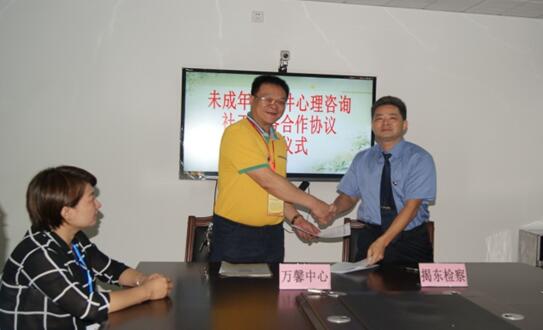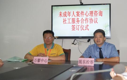 8月23日上午,经与揭阳市万馨家庭综合服务中心协商一致,我院与该服务中心签订了为期两年的《未成年人案件心理咨询、社工服务合作协议》。协议的签订生效,开启了我院依托社会服务机构的专业心理咨询和社工专家团队优势,为涉案未成年人提供心理疏导和社工服务的新篇章。