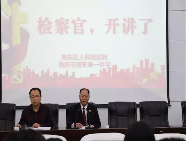3月25日下午,林楚峰检察长以揭东第一中学法治副校长的身份,为该校高二学生生动地上了“如何做新时代的文明少年”一课,赢得了学生们的阵阵掌声。