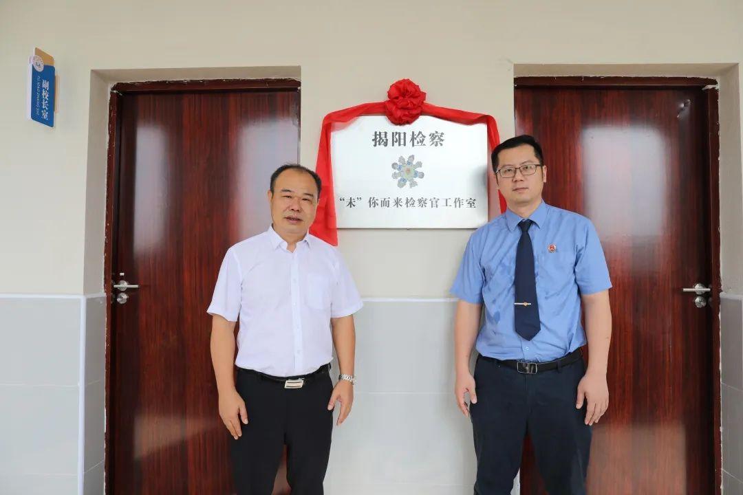 活动结束后,吴桂武副检察长和区教育局党组成员张锐军,共同出席了该校“揭阳检察‘未’你而来检察官工作室”的揭牌仪式。仪式上,双方一致表示将合力推进“法治进校园”活动,共同为揭东未成年人的身心健康成长保驾护航。