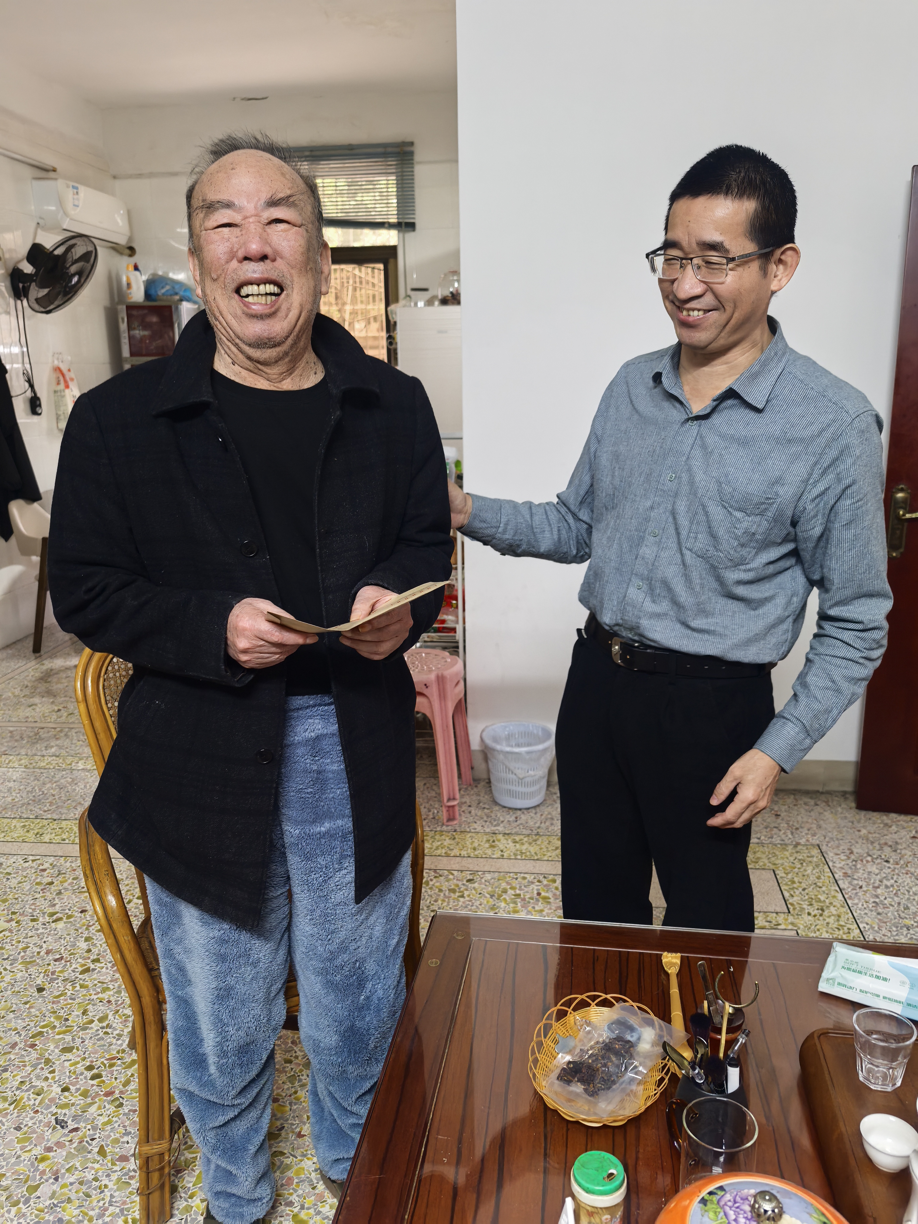 每到一户,慰问组与老同志、老党员促膝谈心、共话家常,详细询问身体状况、家庭生活、医疗保障等情况,认真倾听心声诉求,细心叮嘱注意防寒保暖、保重身体、安享晚年。同时,周英鹏主任深情回顾大家为揭东检察事业发展打下的坚实基础、作出的重要贡献,衷心感谢他们长期以来对检察工作的关心与支持,并简要通报全院2025年度工作成效与2026年工作思路,恳请大家继续发挥余热、建言献策。